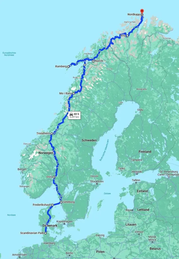 Start für die 10 Teams ist Handewitt bei Flensburg. Von dort geht es mit 9 verschiedenen vollelektrischen Fahrzeugen durch den tiefsten norwegischen Winter ans Nordkapp. Es erwarten uns und Temperaturen jenseits der -20° C und teilweise auch Schneestürme, aber auch unvergessliche Eindrücke und Naturschauspiele. Sylvester verbringen wir auf den Lofoten und hoffen auf viele schöne Polarlichter.